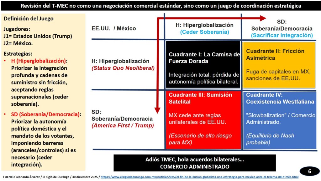 La revisión del T-MEC se aproxima no como una negociación comercial rutinaria, sino como el síntoma de un cambio tectónico en la economía política internacional. Para navegar esta incertidumbre, debemos recurrir a la brújula teórica más lúcida de las últimas décadas: El Trilema Político de la Economía Mundial de Dani Rodrik. La tesis de Rodrik […]