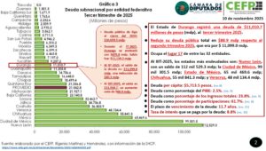 - Durango, en su comparación mensual mayo-junio 2025, cayó -5.6%. Lugar 28 de 32.
