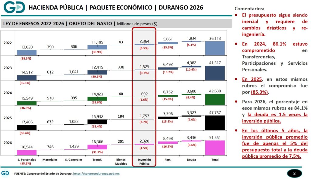 «El presupuesto no es solo una colección de números, sino una expresión de nuestros valores y nuestras aspiraciones.» — Jack Lew (Exsecretario del Tesoro de EE. UU.). En la política fiscal y presupuestaria, lo que no está en los números, es demagogia. Y en el Presupuesto de Egresos de Durango para el Ejercicio Fiscal 2026, […]