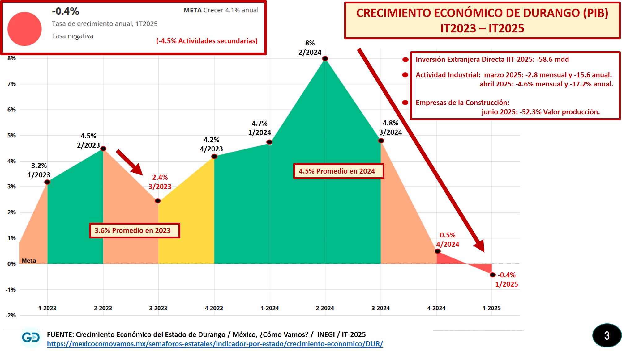“El tercer informe de gobierno y su propaganda no pudieron ocultar la dura realidad. Durango se encuentra en una encrucijada, con una economía en recesión, sin empleos y sin inversión”.
